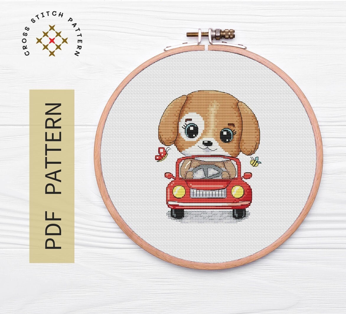 Doggie Cross Stitch Pattern Pdf Car Cross Stitch Pattern Etsy